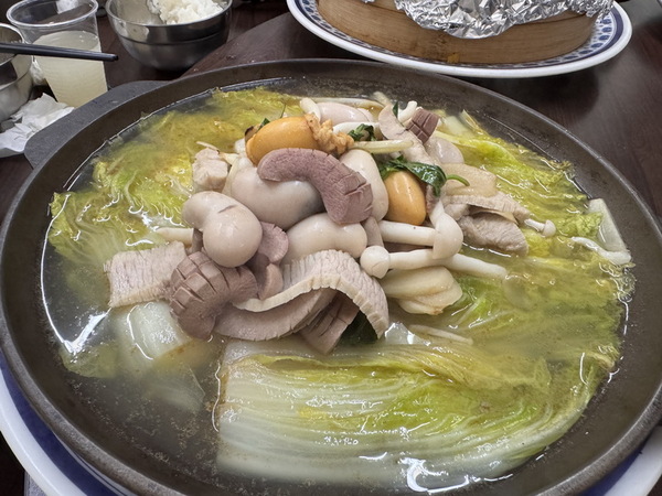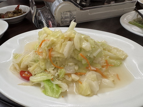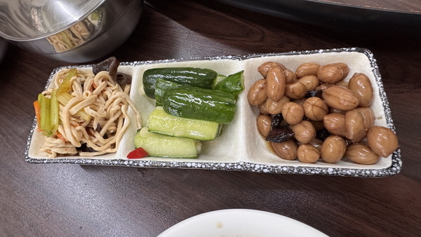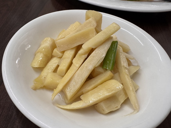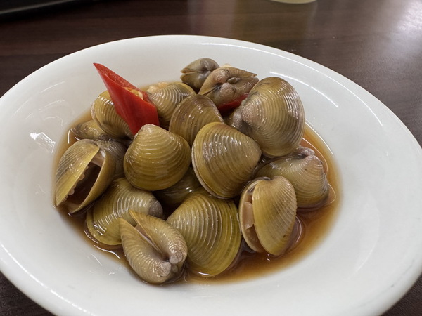 小菜有清甜爽口的筊白筍、醬煮蛤蜊、以及經典的涼拌豆干絲,讓人不知不覺一口接一口的開胃好夥伴。