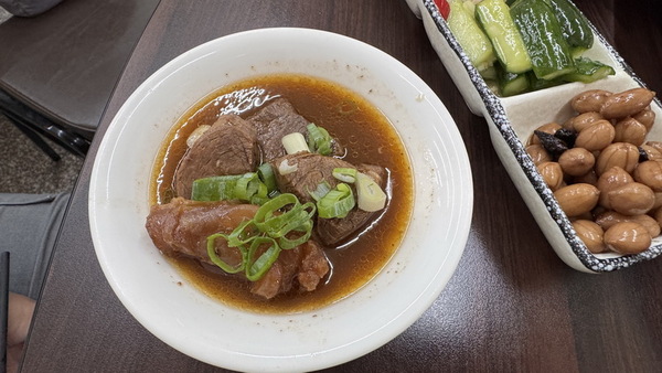 另外,還點了一套醬滷牛肉套餐,滷汁入味、肉質軟嫩,非常下飯,並附有小黃瓜、花生及涼拌豆干絲等3樣小菜。