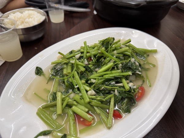 炒空心菜及高麗菜,清爽解膩。