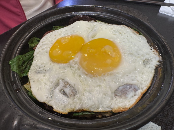 接著是極具吸引力的「黯然銷魂煲仔飯」,是經典的煲仔飯,頂級肝腸與臘腸鋪滿飯面,油潤光澤,再覆以半熟蛋,拌開後,米飯吸附了滿滿的臘味,鹹香濃郁卻不膩口,簡單卻極致,是讓人一吃就上癮的傳統好味道。