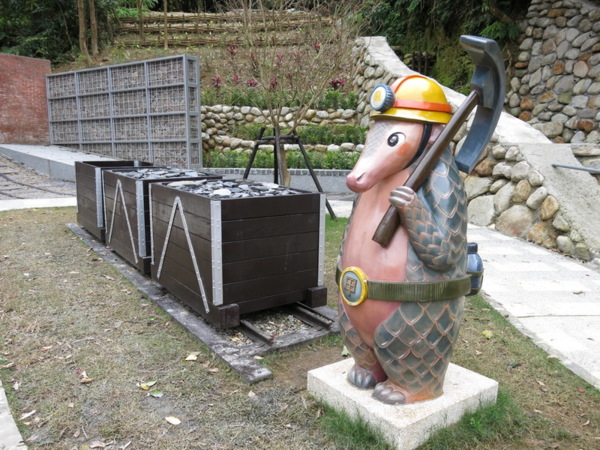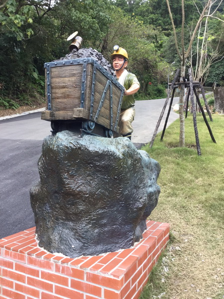 礦坑後方則是有模擬早期採礦工人的作業情形。
