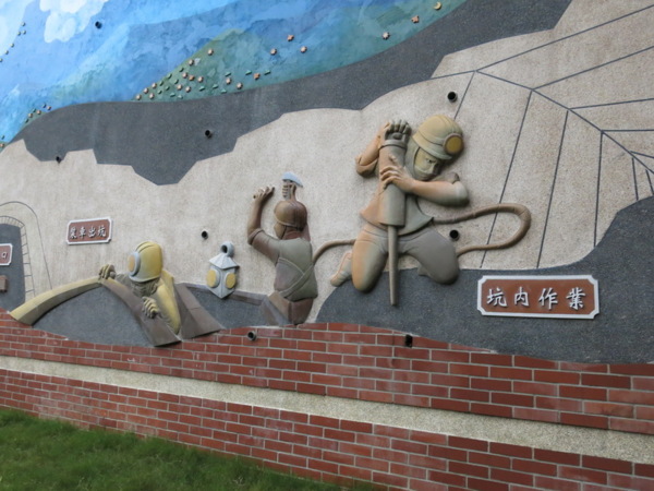 再走上來,陶板彩繪壁畫敘述煤的生成,開採步驟加工及製造過程。