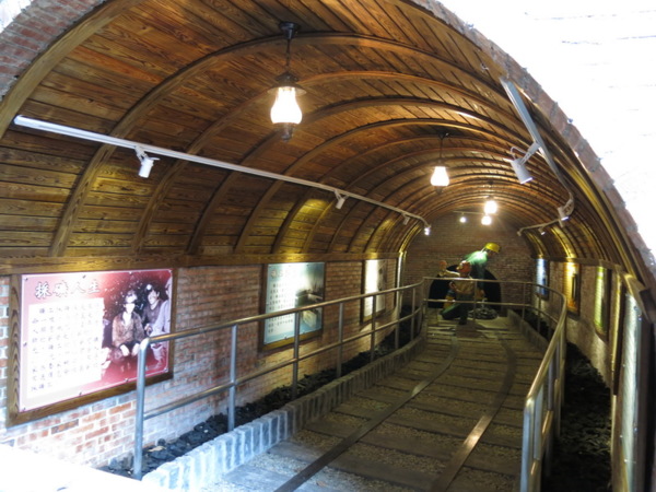 進入小小的隧道,開放參觀的範圍不大,看著兩旁的說明牌,記載著老炭坑的文化。