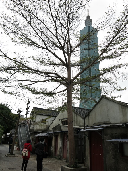 來這裡的路上,還沒有明顯的指標,所以需先做足交通資訊的功課。這一天我們回程還早,之後再去逛逛四四南村,抬頭仰望,臺北101大樓很美。