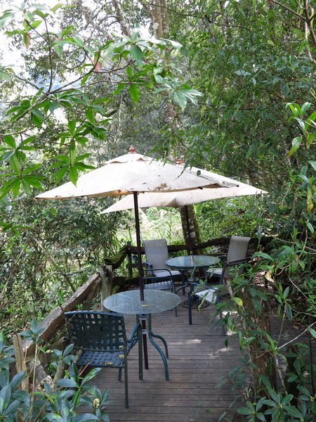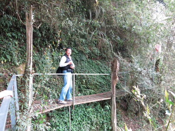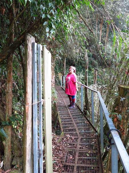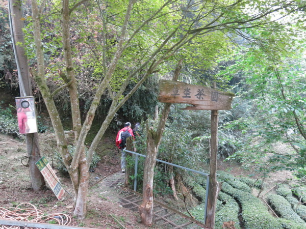 咖啡屋本身是開在自家茶園內,茶園名叫草坔茶園。走進小徑入口,會經過一段地勢陡峭,無支撐點的空中步道鐵架橋。