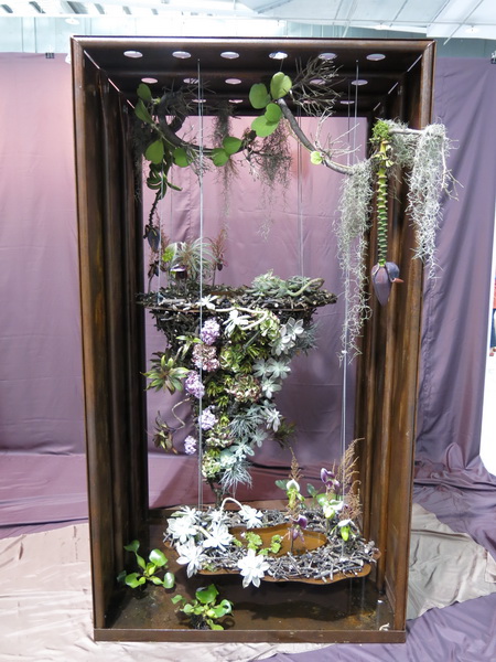 接下來的作品又是另一種不同的主題設計:同樣的大小黑色木條框架,外加一個盆花的規格限制,讓花藝家各自發揮創意隨想。