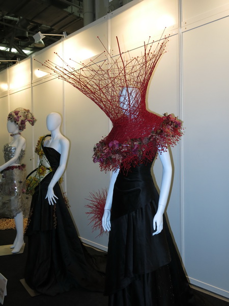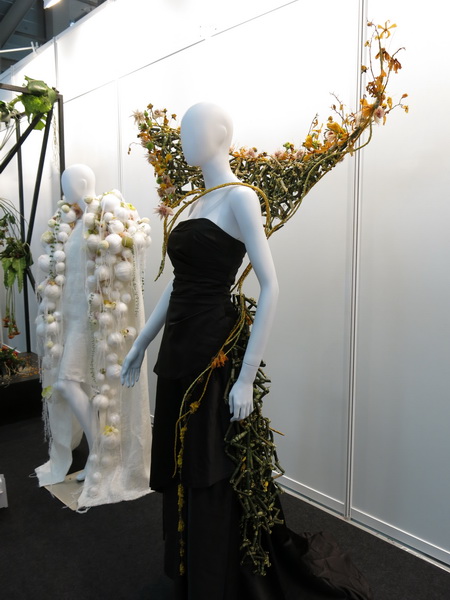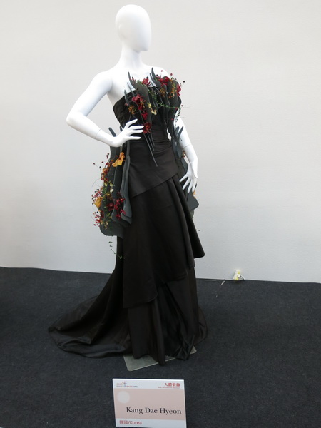【人體花藝裝飾展示區】:十餘件各有特色的禮服,件件均巧妙的融合了花藝的裝飾。