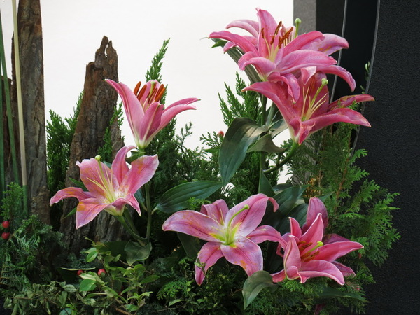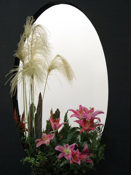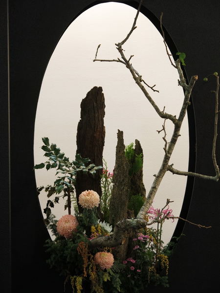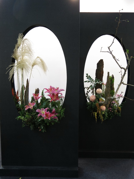 【東西洋花藝大作展示區】:作品面積較大,雖未標明,卻似有主題,每件均頗有畫面、意境,能引導遊客的思緒,進入花藝營造的情境中,想像遨遊。