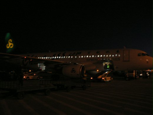 國內線的飛機很小,座位也很小,大概跟台灣的差不多,我記得一排是五個位子。我們必須爬樓梯走上飛機,由於,同團的有一位殘障人士,行走比較不方便,但我發現,大陸人都很主動,服務人員一看到,就會過來攙扶,幫助他上飛機,並且幫他排較前面的位子,讓他方便上下飛機,這點真令我感動,我想台灣人要好好檢討喔!