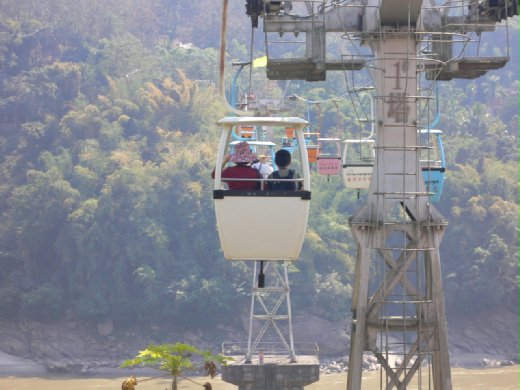 瀾滄江是一條著名的大河,經過了哪幾個國家,我早已忘記,在纜車上,才驚見他的狀闊,想到數個國家的人民,皆靠這條河為生,我就對他肅然起敬。俯視的滾滾的水流,心情頓時間開闊了起來,就讓煩惱跟水一起流走吧!