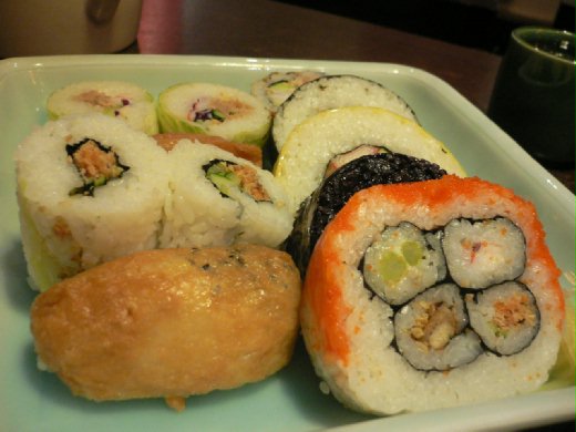 繼上次,我吃過炸蝦烏龍麵後,這次我們就改用和菜的方式,點了一份壽司、一份炸豬排和一人一份茶碗蒸。茶碗蒸首先上來,我挖了一口,金黃色的蒸蛋,還會微微的抖動,似乎告訴我,吃我吧!吃我吧!一口吞下去,果然美味,完全沒有海鮮的腥味,入口及化,讓我忍不住一口接一口,停不下來了,裡面還放入一些雞肉、蛤蠣、小蝦米等(其他的我忘了),比起村?日式料理店的好太多啦!