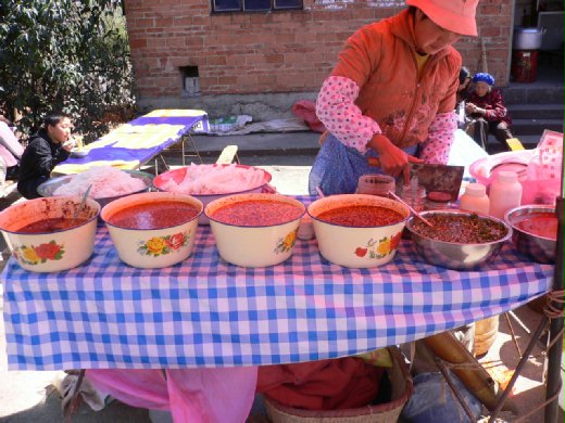 參觀完石林後,我們又沿著路開回雲南的市中心,路途中,經過了一個小鄉鎮,我們就在這小鄉鎮吃飯。在菜還沒上來時,我們就先逛了一下趕集。看到了許多有趣的事情。