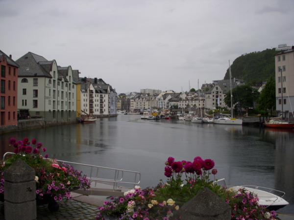 兩年前來Ålesund恰逢船舶嘉年華,五花八門、形形色色的私人遊艇羣聚擠滿港灣的每一個角落,廣場下至水面的階梯前搭置一座大型舞台,遮蔽了灣面的全盤景觀,場面氣氛雖然熱鬧非凡,視野反不如當天向晚的雨中即景。