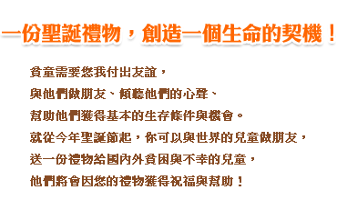「嗯,我到世界展望會的網頁選購了一份禮物,禮物是關於兒童教育助學……。」