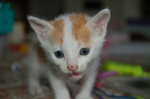 收養牠的第一天,要帶牠回家前,我第一個步驟就是把牠送到「貓犬小屋」,做了洗澡、去蚤、剪爪子的工作,並且請教了據說家中養了九隻貓咪的店員小姐,如何照顧這隻還沒斷奶的嬌客。於是我買了奶粉、奶瓶、貓沙、貓沙盆、外出提籃、除蚤項圈等等……。唉,這簡直在照顧嬰兒嘛!嗯,據說當牠六個星期到八星期大的時候,還要去注射五合一疫苗,並且植入晶片。