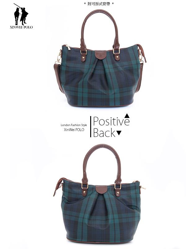 【XINWEI POLO】經典綠格系列-個性都會抓皺包110-三件組部落客大推