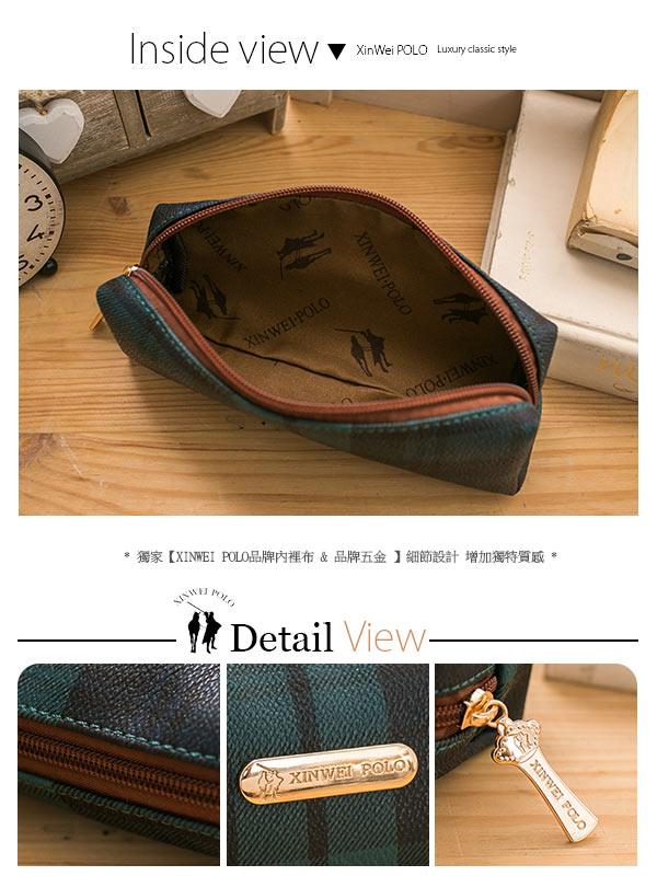 【XINWEI POLO】經典綠格系列-個性都會抓皺包110-三件組試用文