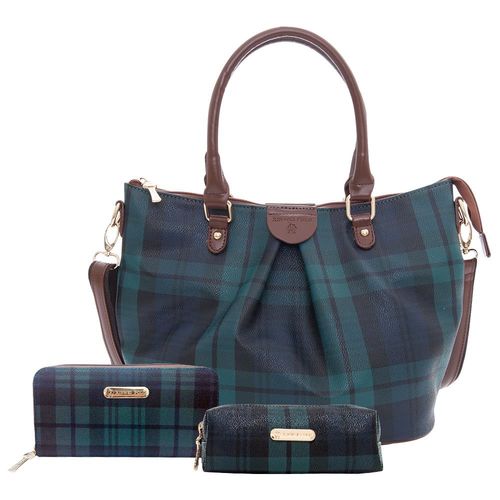 【XINWEI POLO】經典綠格系列-個性都會抓皺包110-三件組CP值超高
