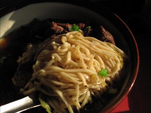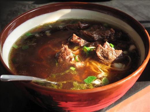 坐在騎樓下,來了一碗小碗的牛肉麵,湯頭深褐,麵條細長,牛肉切的不大不小,約有六塊左右,當頓午後點心應不會太撐膩的。牛肉湯頭不油不膩,偏甜的湯或許加些蔗糖。牛肉軟爛適中,麵條算Q,入口恰當。
