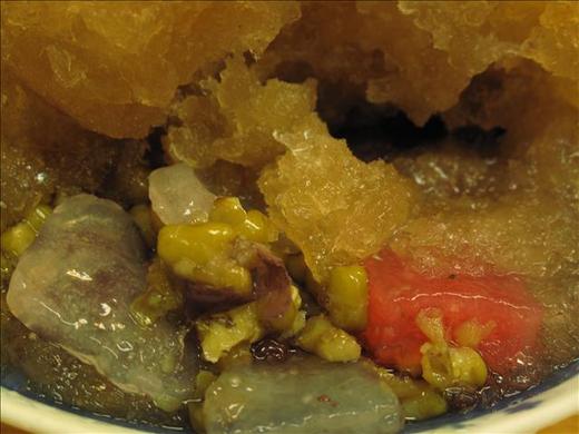 范四果冰好吃訣竅在於糖水芳香,綠豆、紅豆煮得乾且甘甜,紅白QQ圓Q得別家比不上。方方的QQ圓是他家獨創製作,混在冰品中要迅速先吃不然Q 圓瞬間變硬,就不大妙囉!