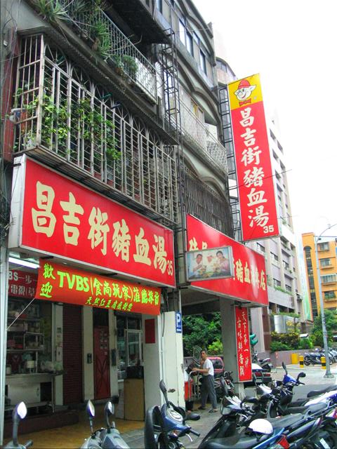 若昌吉街的豬血湯會有豬騷味是絕不可能的,除了豬血湯之外,還可以加豬大腸,一碗油滋滋的庶民小吃道盡過去勞力人們艱辛歲月貧脊飲食難得的補給小歡樂。