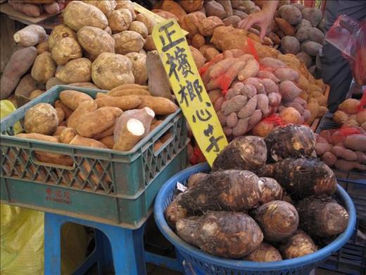 金山老街人聲沸騰食物眾多,繽紛和熱鬧是許多遊客到金山必來的地區。除了去吃金山鴨肉之外,選購市場裡的地瓜、芋頭也是主要原因。從金山高中街尾開始往前走,一攤攤賣地瓜的小販真是不少。望去,出來賣地瓜的老闆、老闆娘幾乎是上了年歲的老人,這些老人對土地死忠,任土地荒蕪他們會傷心難過,至於辛苦耕種的地瓜芋頭或是蔬菜瓜果賺不賺錢?倒不是他們出來擺攤的主要意義。