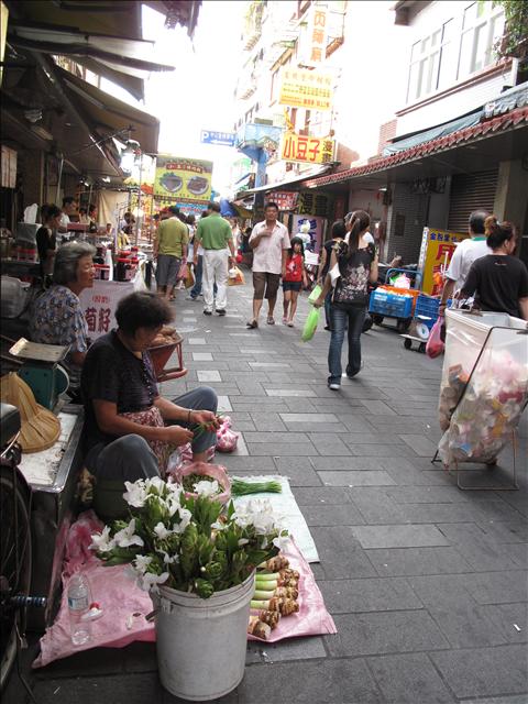 金山老街賣地瓜的老人都是有恆心和勤奮的人,地上擺著幾條地瓜和芋頭或是芋梗,不是幾千幾百的大交易,蹲在街角靜靜的等著客人看上他所種的地瓜、芋頭,付出小額錢兩好讓他們貼補家用,以此成就務農的成就和喜悅。