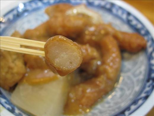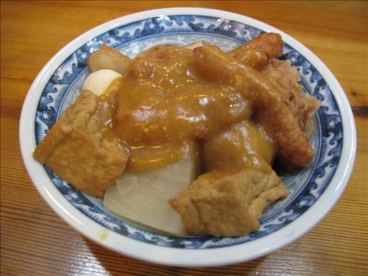 叫了三碗甜不辣,坐下,慢慢品嚐。嗯!這甜不辣味道是還不錯,只是醬料稍鹹些,稍鹹些,我心中直念著。魚漿的新鮮度有八分水準,至於丸子算鮮美好吃,餛飩酥就沒有很酥脆。