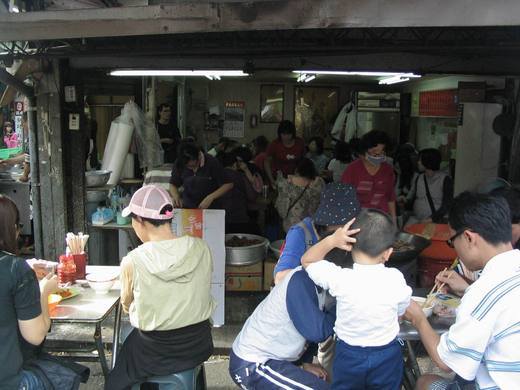 果真,一到店門口是一家很普通的小吃麵店,店裡的裝設並不舒適乾淨,座位也很擁擠,但就是不知哪股魅力?一大堆人站在門口,等著擠進去坐下想嚐嚐排骨麵。沒多久,等到空位。可惜的是,老闆說排骨麵沒有了,正在進行蒸煮下一波的排骨麵。