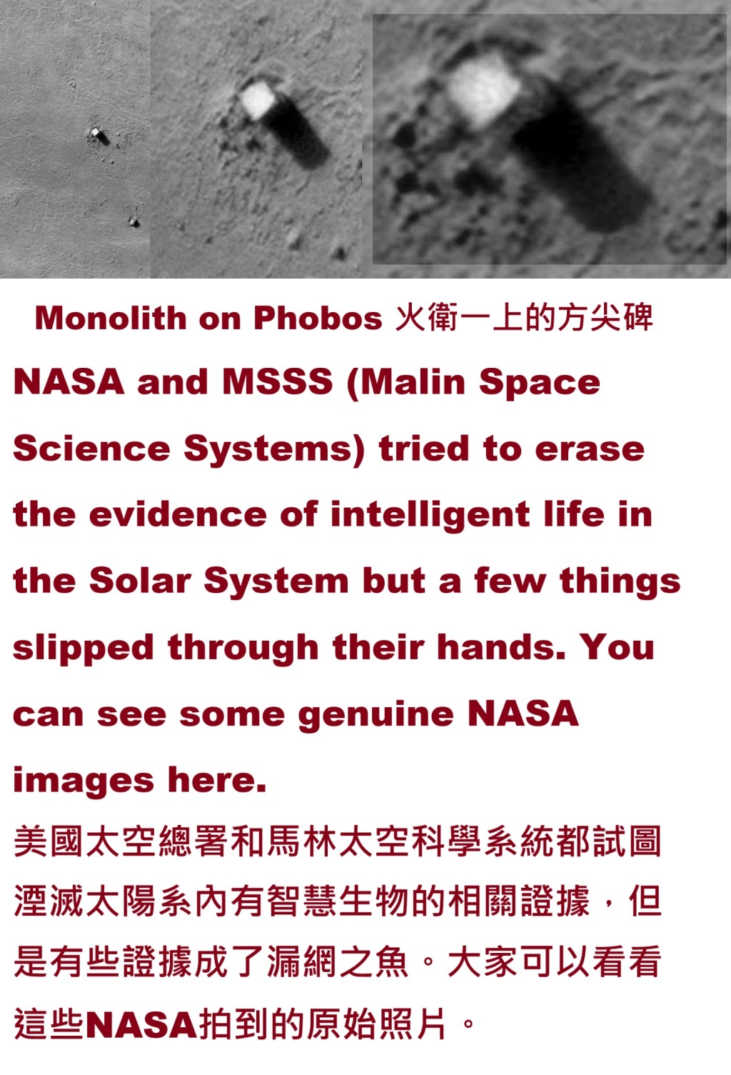 NASA and MSSS (Malin Space Science Systems) tried to erase the evidence of intelligent life in the Solar System but a few things slipped through their hands. You can see some genuine NASA images here.