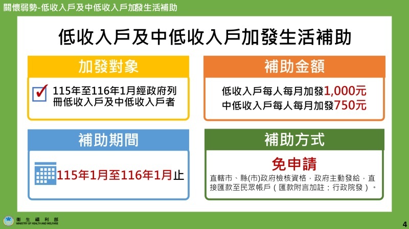 Taiwan to raise monthly living allowance by NT$1,000 for low-income families