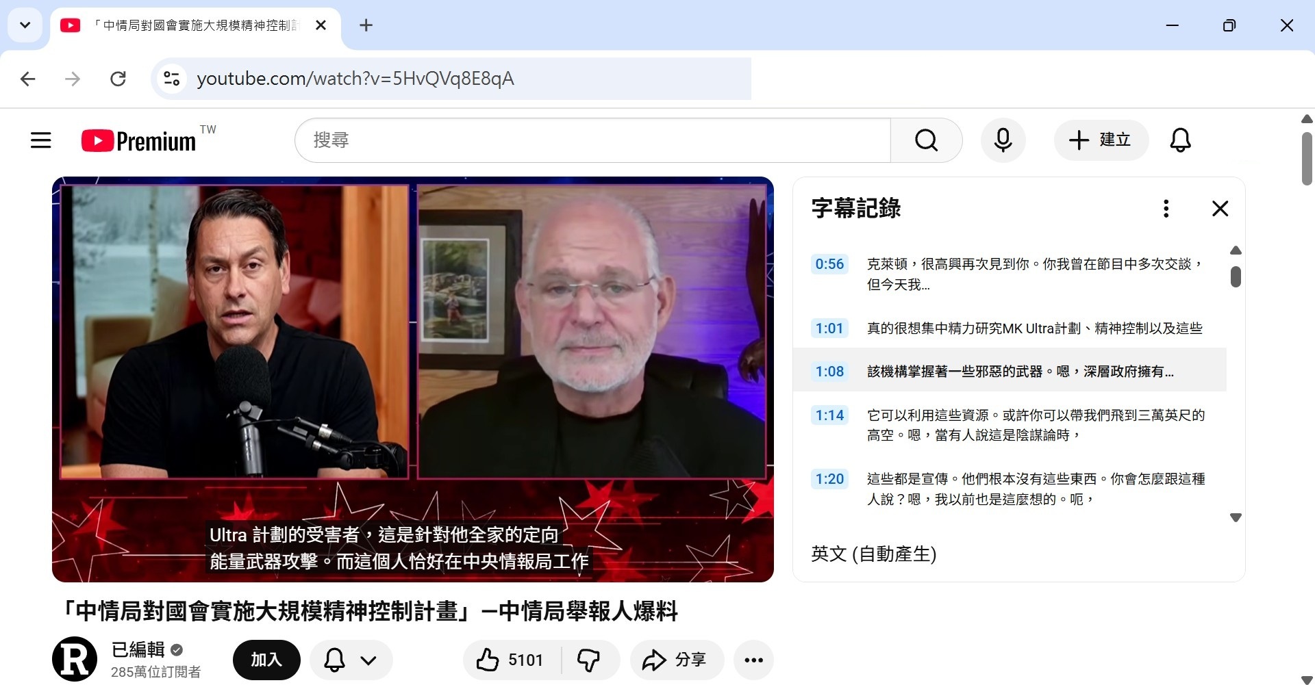最後再點選 : 顯示轉錄稿(字幕紀錄)