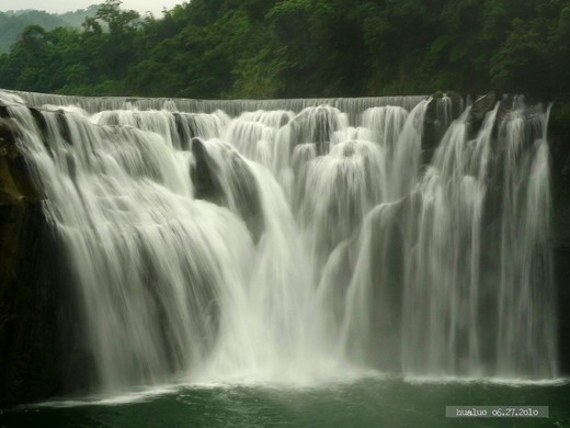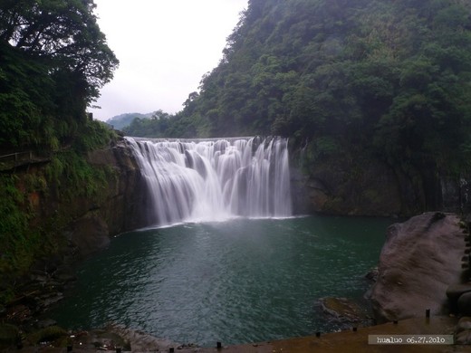 (據老頭說,先前並沒有橋下那四條細柱子。拍攝時雨勢漸大,還好幸運地沒將瀑布拍成混濁的泥水色。)