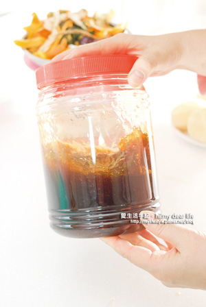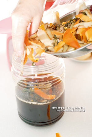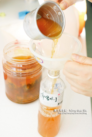 4. 三個月後取適量發酵好的汁放入寶特瓶,剩餘的可以繼續擺放。