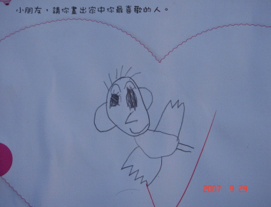 「不是啦! 老師要我們畫最喜歡的人啦!!」
