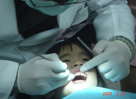 因為我曾經親眼目睹過對病患(尤其是小朋友)很粗暴的牙醫,因此對照起來,這裡的醫師顯得仁心仁術多了。在取得許可之後,我也幫他們留下了在診療椅上忐忑不安的模樣,真是太可愛了。
