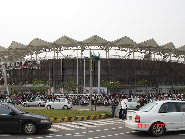 在桃園棒球場的開幕戰賽前,我們已經先未雨綢繆地勘查了路線,在運動公園繞了一大圈。傍晚時分只有三三兩兩的運動民眾及極少數幾位球場的施工人員,當時的我實在無法想像隔天會有滿場的瘋狂。