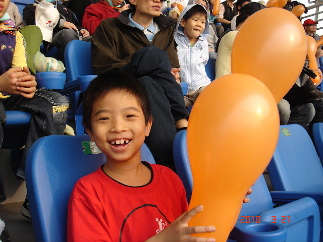 YA!! 不只小朋友興奮,就連他爸爸我也忍不住想要跳起來哩!(上一次到球場應該是在十七八年前了)