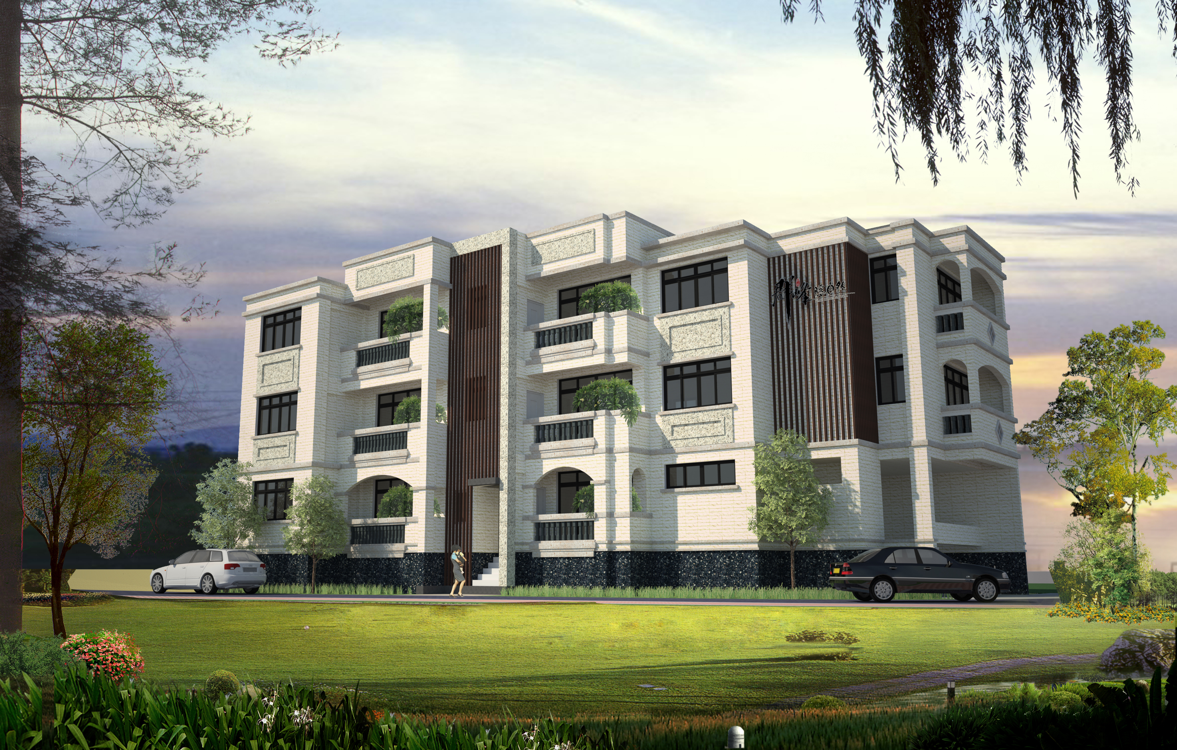 金門少有的鋁隔柵外觀,添加了幾分建築物的氣質 每戶的前陽台我們種植了一到夏天就會散發陣陣花香的『雞蛋花』 到了夜晚之後整個建築物外觀打上外牆燈後整個氣勢就非凡了起來 到了晚上後就成為湖下最明亮的一棟建...