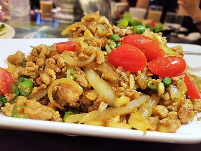 打拋松阪豬/220元/鍋氣掌握得不錯,香氣撲鼻,鹹辣各半,兼有洋蔥的甜,讓鹹甜辣有層次。