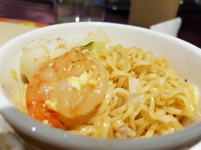 第三次是記者會,會後餐敘,在主辦單位盛情邀約下,不好拒絕,還是去了,因為沒有期待,就沒有準備拍照。結果第一道上「酸辣炒泡麵」,嚐了一口,我心跳了一下!是了,就是這個味道:酸為主角,帶出比例剛剛好的鹹甜辣。我急忙找手機準備拍照,當鏡頭對上盤子時,裏頭已空空如也!所以,只好沮喪地拍拍碗裡的剩麵了。