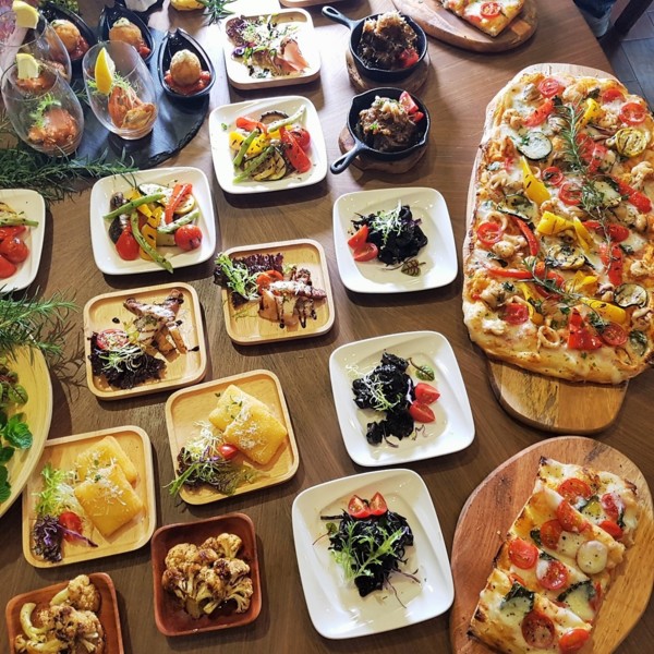 威風情人餐的內容是以主餐、湯品派送到桌,其餘特色小食、tapas、披薩、