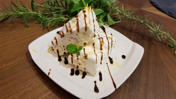 奶油分別打發後下去製作,口感類似冰淇淋的義大利冰霜,內層則是用義大利