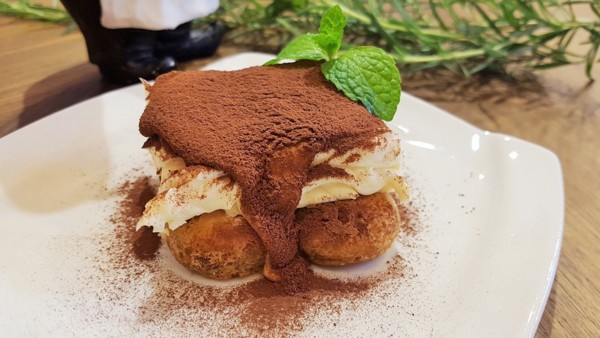 另一道「就是要蛋」其實就是提拉米蘇,主廚以純馬斯卡澎起司製作,口感綿
