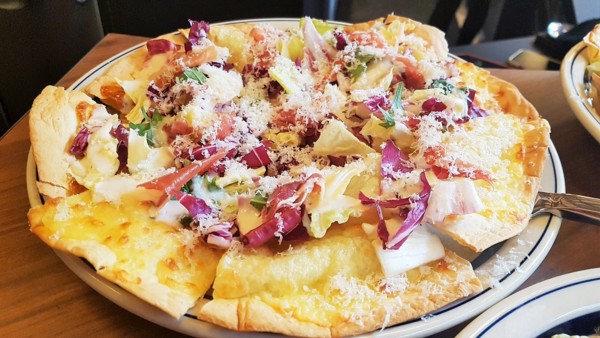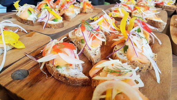 因為今天是開幕,招待貴賓跟媒體,並未供應正式餐點,上的是會供應的披薩、鹹食