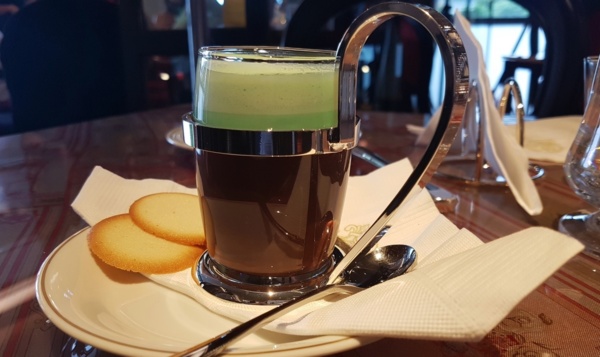 上面的是薄荷奶泡、巧克力碎片,底下是百分百純頂級熱可可加上些許甜酒