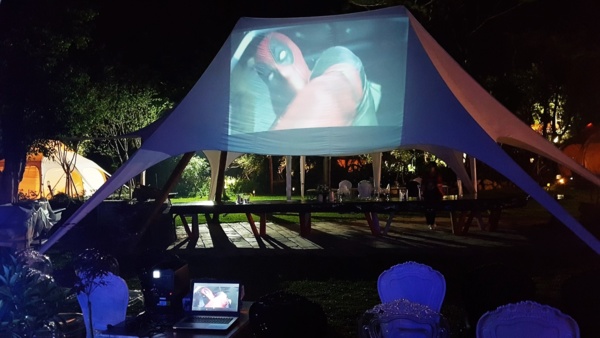 蚊子電影院,在山中草地上悄悄開演,今晚放映死侍!