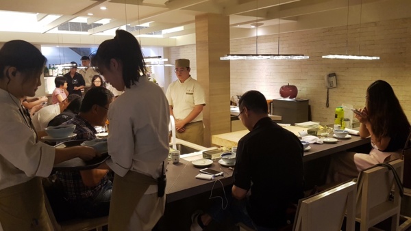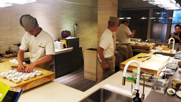坐鎮,帶領幾位冷檯師傅張羅每位客人的餐點。