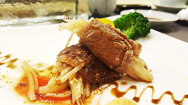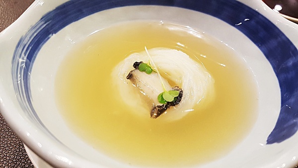 ↑ 鮑魚山藥細麵,湯汁是鮑魚滷汁,入口極度鮮美。
