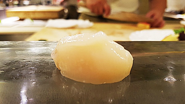 干貝則是撒上少許松露鹽,入口時,鹽的鹹味將干貝的甜完全提出來,入口即化的香